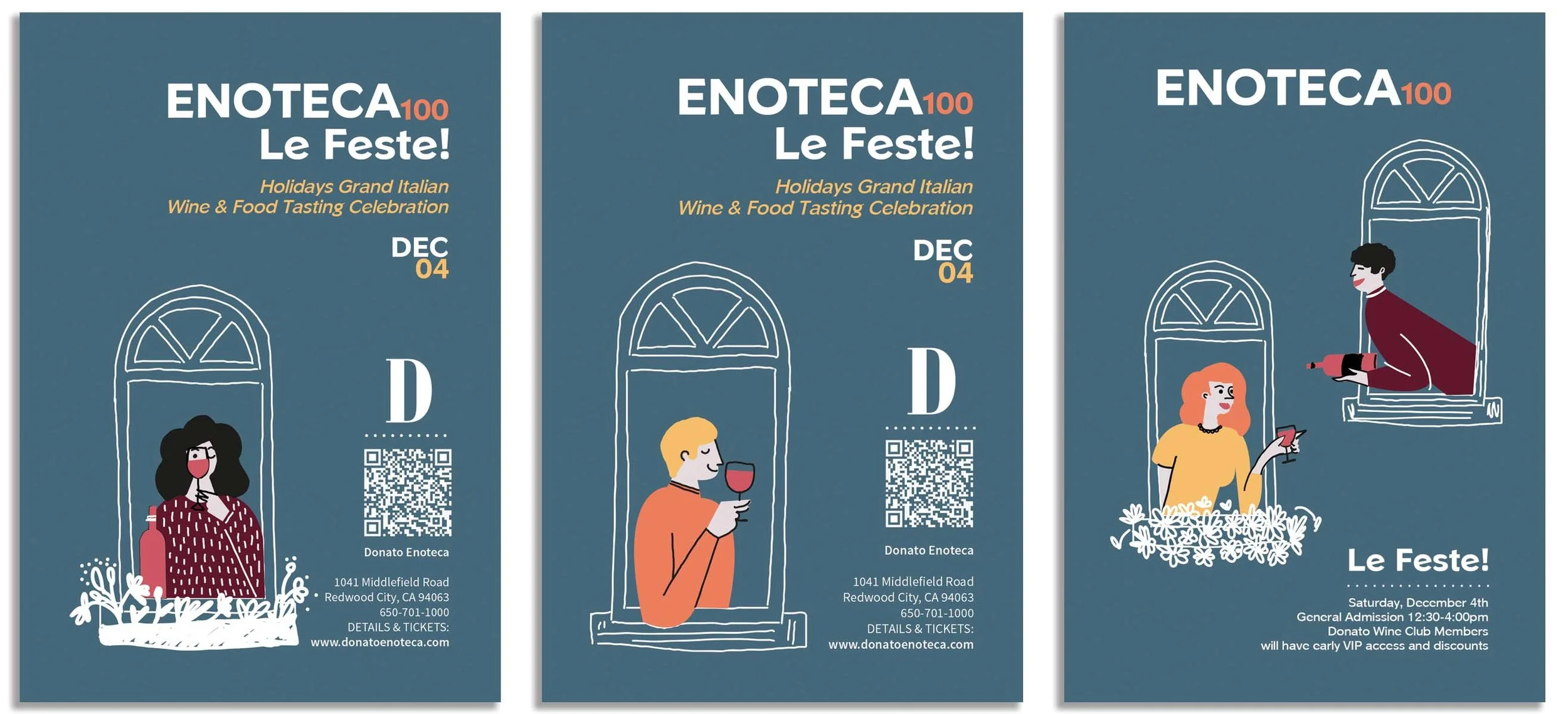 Since 2009, we have been working with Donato Scotti, owner and Executive Chef at Donato Enoteca, developing each of his events in addition to the website. ENOTECA100, to name one, is dedicated to the prestigious Italian wines imported into the Bay Area, and is repeated several times a year with great participation from the public who love Donato's cuisine. The numerous wine dinners are also very popular and appreciated. Everything is always accompanied by graphics and photography from our DILUNA Studio.